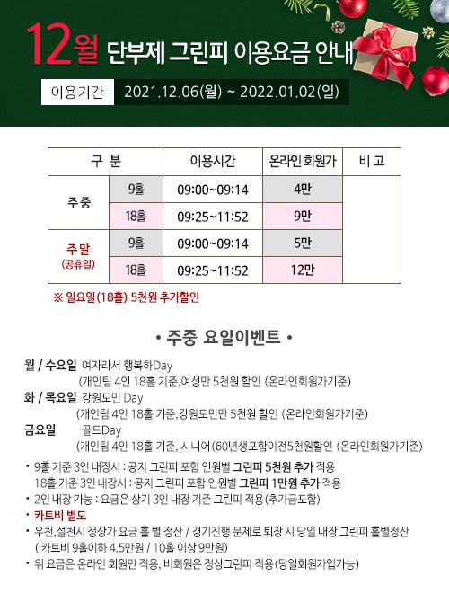12월은 단부제로 오전시간에도 9홀라운딩 가능하니 잘 확인하세요