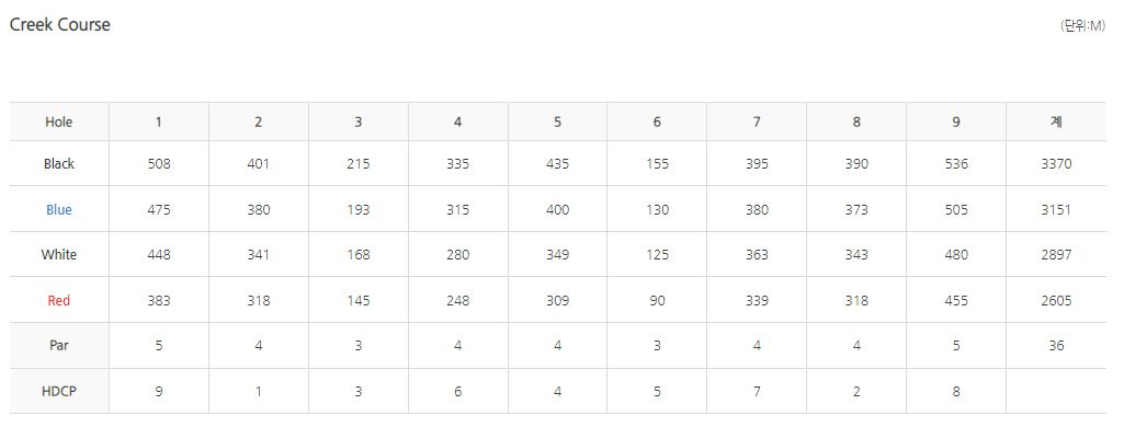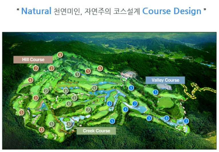 - 코스 소개 (힐 코스, 크릭 코스, 밸리 코스)