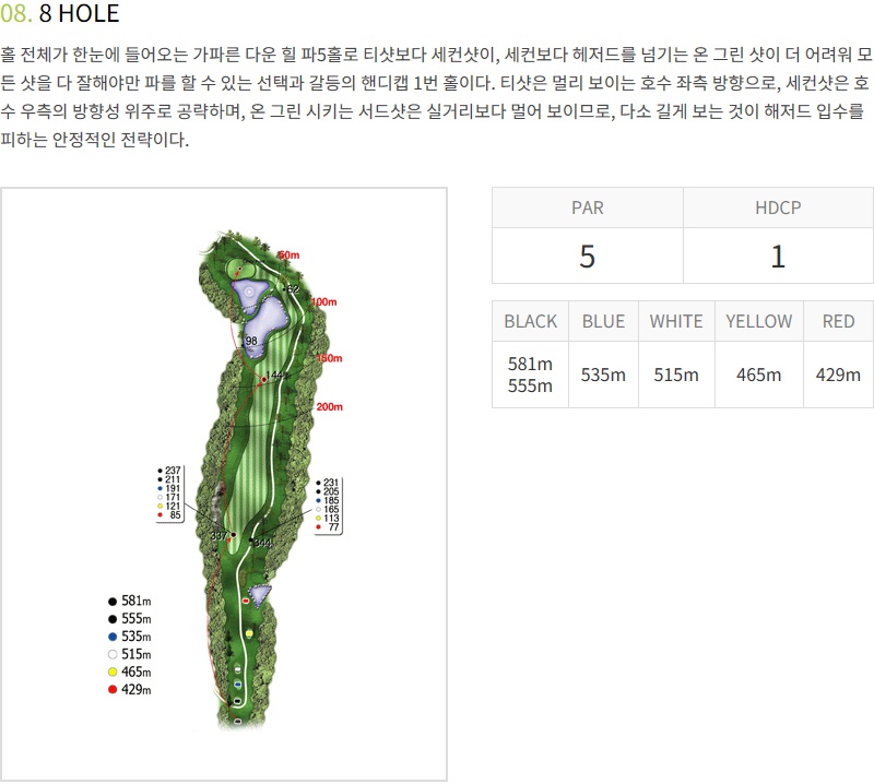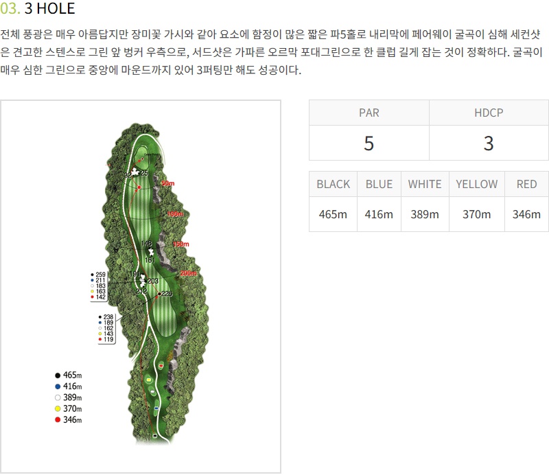 벙커와 그린주변이 어렵기 때문에 신중한 샷을 해야하구요