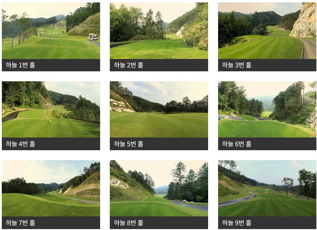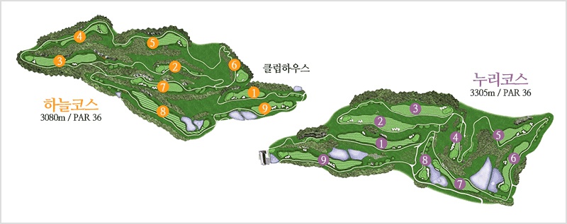 비콘힐스cc는 하늘코스, 누리코스 2개가 있구요 각각 9개홀씩 총 18홀로 되어 있어요