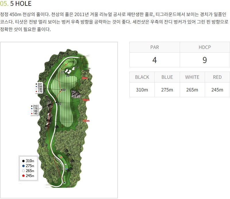 하늘코스 5번홀 역시 거리가 짧은 파4홀이에요